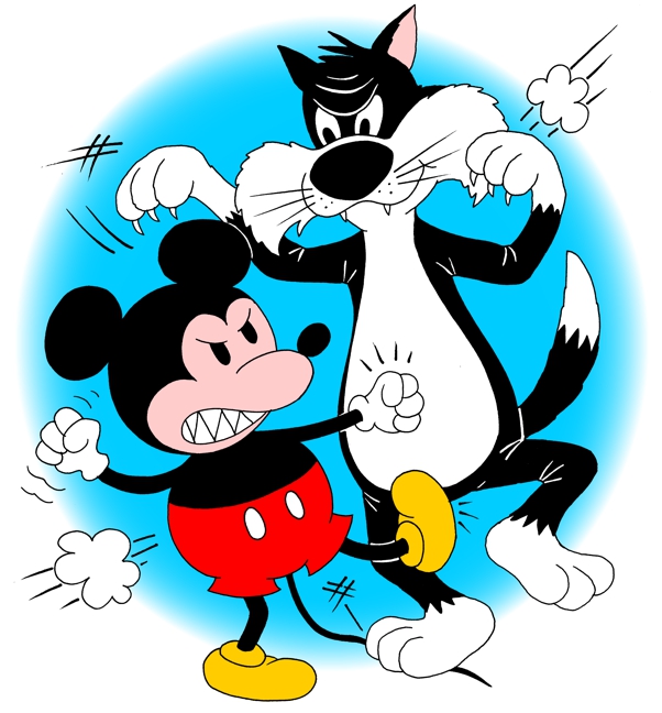 Cat and Mouse Fighting Cartoon Illustration by John Pritchett For details on usage Email Pritchett Characters | Site Map | Home Page