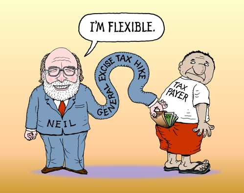 Hawaii Reporter 3-18-11 Abercrombie promised no general excise tax hike, now says he's "flexible." Next Cartoon | Previous Cartoon | 2010 | 2011 | Home | Search