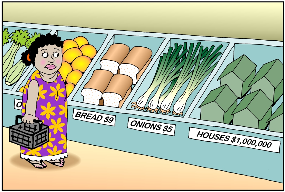 Hawaii's high prices for food and housing. Pritchett Cartoon for Honolulu Civil Beat, June 20, 2021 | To comment, Email Pritchett Next Cartoon | Previous Cartoon | Civil Beat Pritchett Cartoon Archives | Home Page