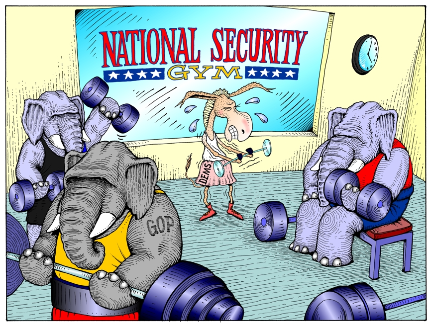Democrats weak on National Security, National security gym workout. For details on usage or to purchase original art please Email Pritchett Archives | Home Page | Site Map | Search
