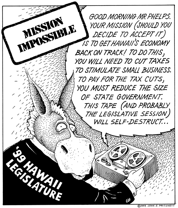 Second Place Editorial Cartoon Award, Hawaii Publishers Association 1999.