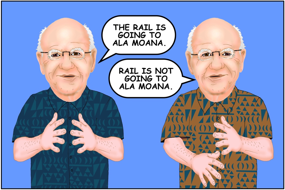 Honolulu Mayor Rick Blangiardi contradicts himseld on rail going to Ala Moana, not going to Ala Moana.