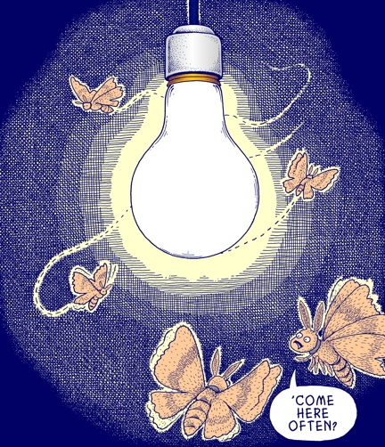 "Moth Attraction" For details on usage or to purchase original art Email Pritchett Crazy Cartoons | Site Map | Home Page