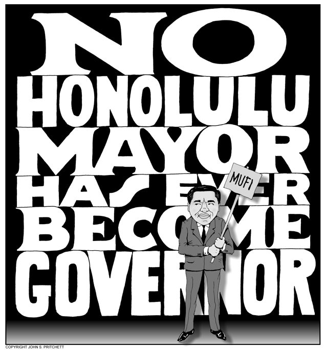 Honolulu Weekly 7-14-10 No Honolulu mayor has ever become Hawaii governor. © John Pritchett | Email Pritchett | Mufi Home | Weekly Archives