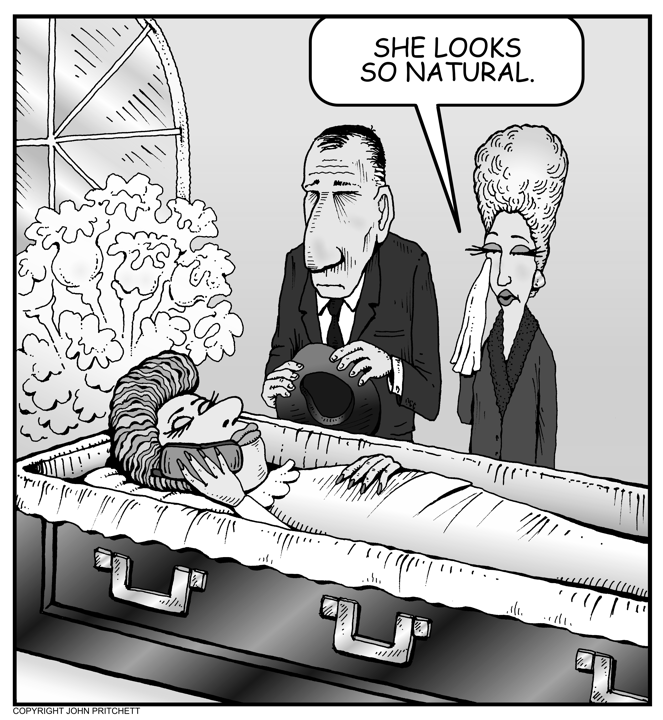 Honolulu Weekly 12-7-05 The deceased looks so natural on cell phone in casket at funeral service. | See it in Color Next Cartoon | Previous Cartoon | 2005 | Archives | Home | Search