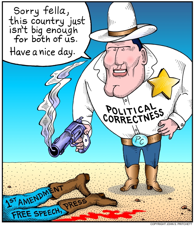 Political Correctness Sheriff, Political Correctness Run Amuck For details on usage Email Pritchett Media Cartoons | Site Map | Home Page