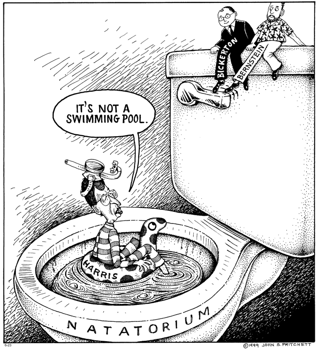 Honolulu Weekly 6-23-99 Honolulu Mayor Jeremy Harris says Natatorium not a swimming pool. | See it in Color Next Cartoon | Previous Cartoon | 1999 | Archives | Home | Search