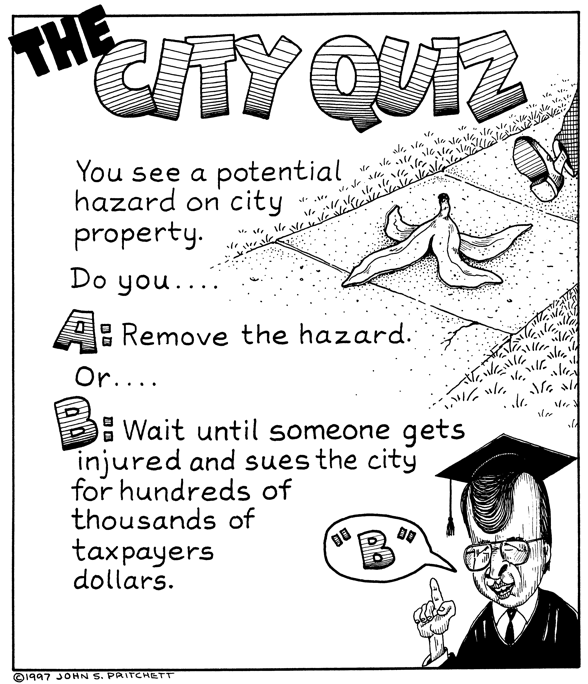 Honolulu Weekly 7-2-97 City neglects basic maintenance, waits for expensive law suit. Next Cartoon | Previous Cartoon | 1997 | Archives | Home | Search