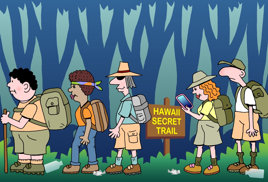 Hawaii Secret Trail Not So Secret. Pritchett Cartoon for Honolulu Civil Beat, July 18, 2021 | To comment, Email Pritchett Next Cartoon | Previous Cartoon | Civil Beat Pritchett Cartoon Archives | Home Page