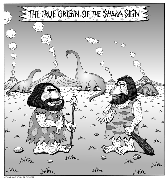 Honolulu Weekly 9-14-05 The True Origin of the Hawaiian Shaka Sign | See it in Color Next Cartoon | Previous Cartoon | 2005 | Archives | Home | Search