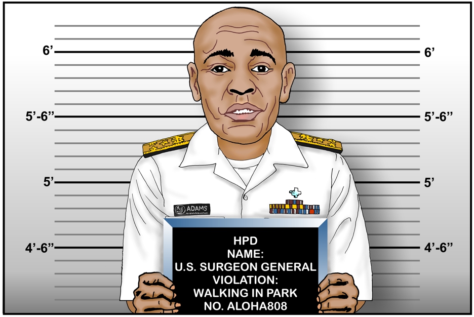 While in Hawaii to help with the covid, U.S. Surgeon General Jerome Adams is arrested for walking in a park.