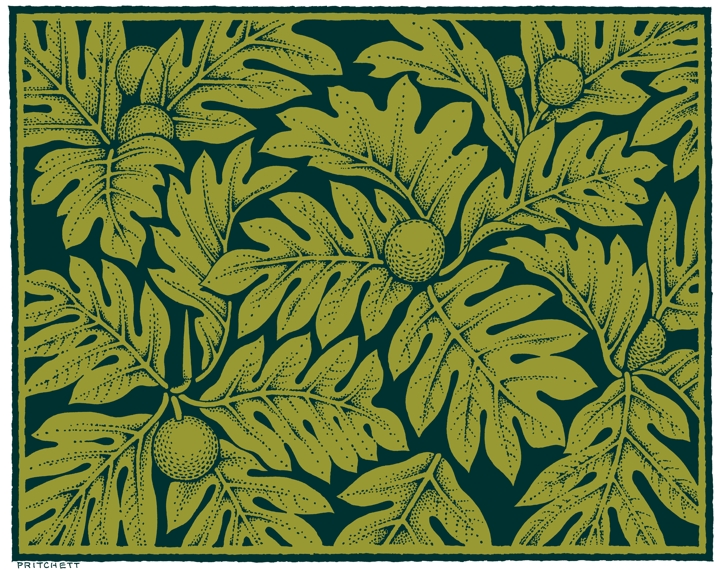 Ulu, breadfruit, Hawaiian plant, color illustration by John Pritchett Email Pritchett | Color Illustrations | Site Map | Home Page