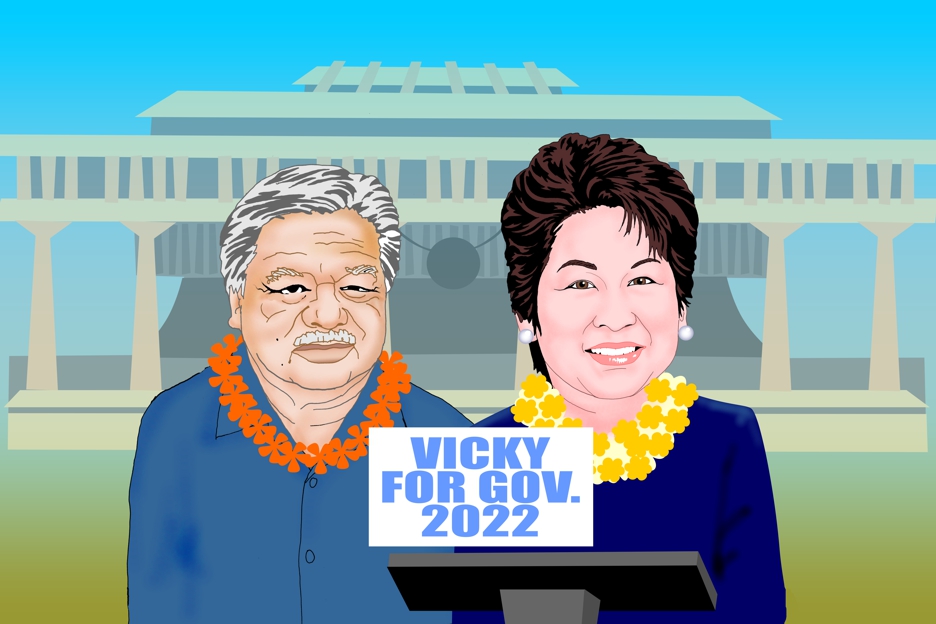 Vicky Cayetano will run for Hawaii Governor. Pritchett Cartoon for Honolulu Civil Beat, September 12, 2021 | To comment, Email Pritchett Next Cartoon | Previous Cartoon | Civil Beat Pritchett Cartoon Archives | Home Page