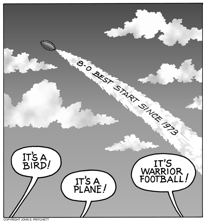 Honolulu Weekly 10-31-07 University of Hawaii Warriors undefeated after eight games. Next Cartoon | Previous Cartoon | 2007 | Archives | Home | Search